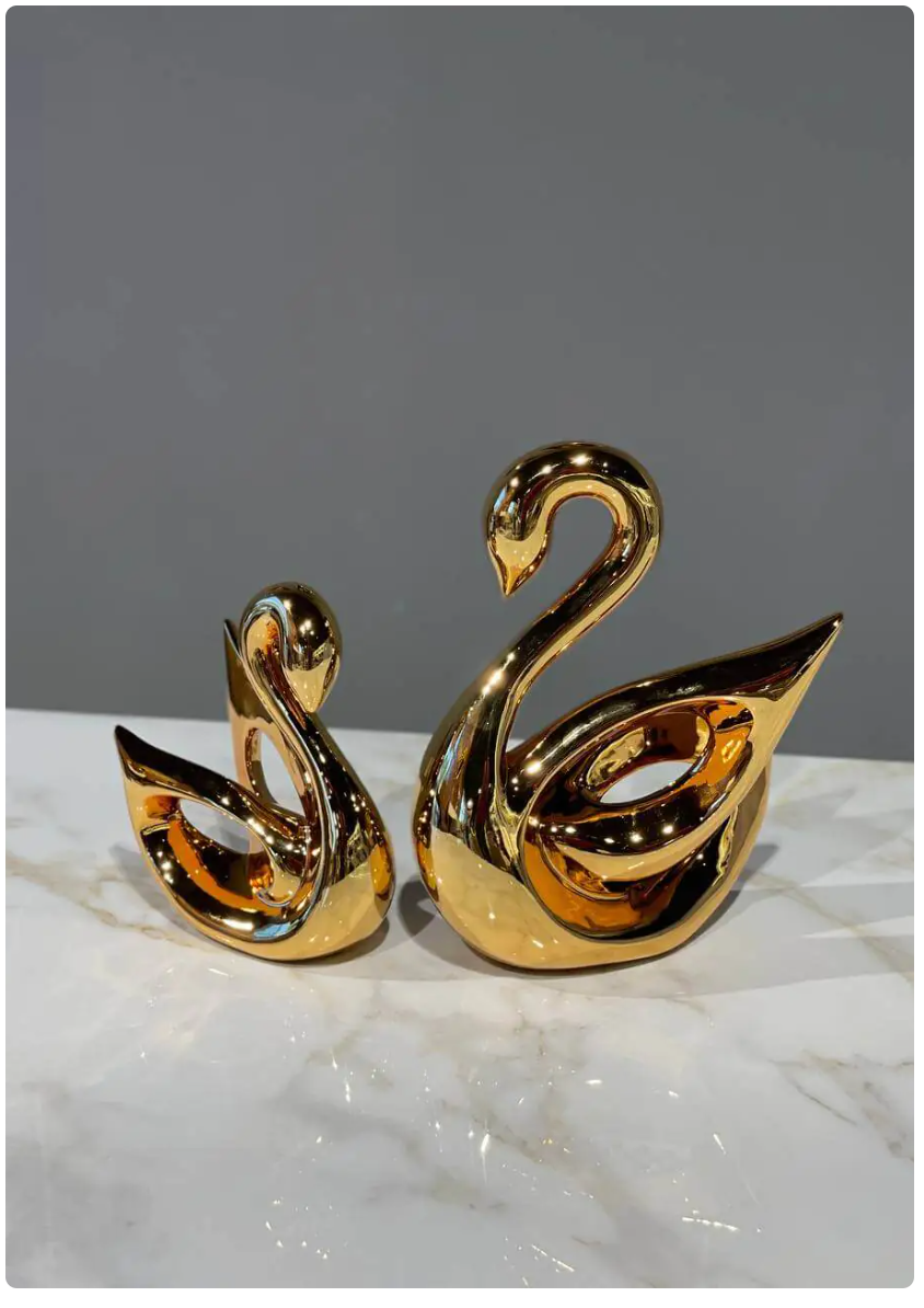 Высота большого лебедя: 26,5 см Ширина большого лебедя: 12 см Высота маленького лебедя: 20 см Ширина маленького лебедя: 10 см