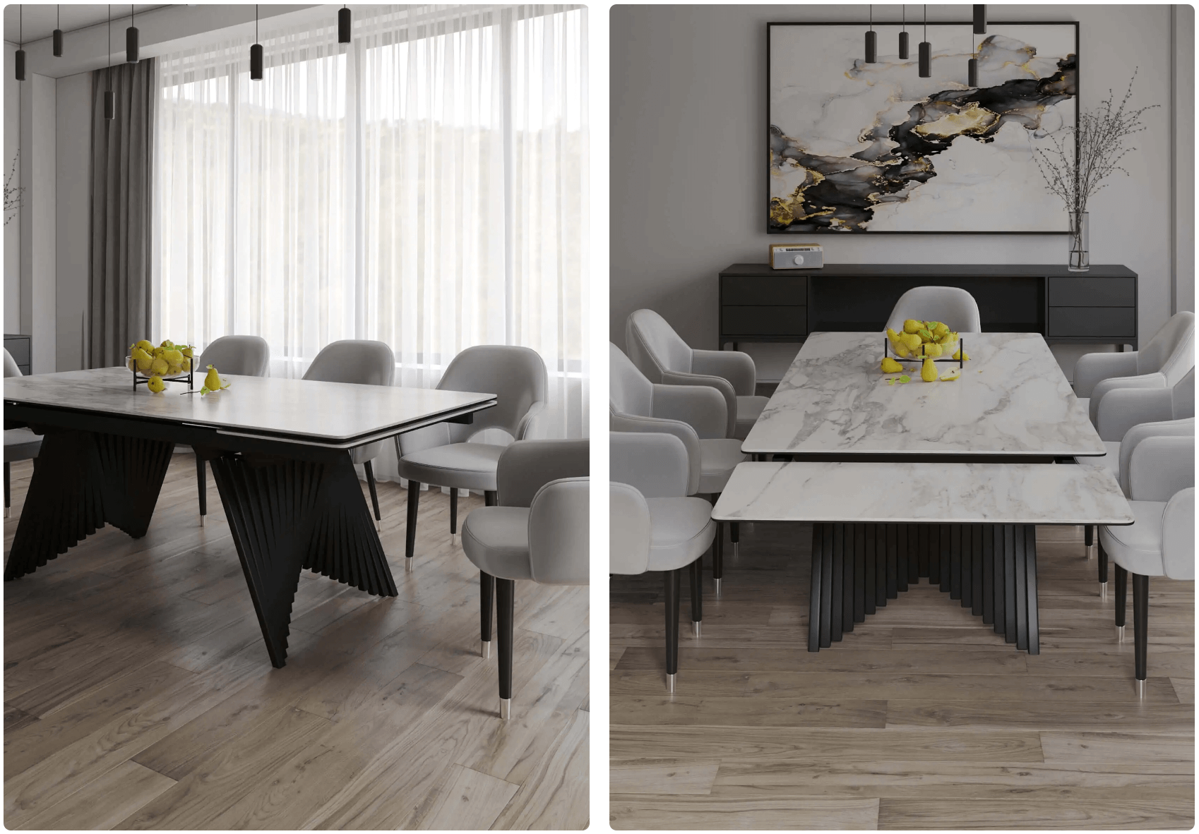 Материалы: подстолье — металл раздвижение — торцевое столешница — керамика